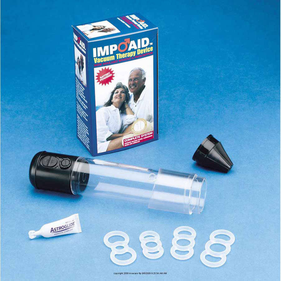 Includes O.T.C. grade battery pump. Penile tube, 4 incrementally different size rings, tube of lubricant, instruction booklet and 800-HELP line service. Patented ring ejector. Comes in sealed retail packaging. Battery operated. One-year warranty on pump and tube. Available without a prescription.